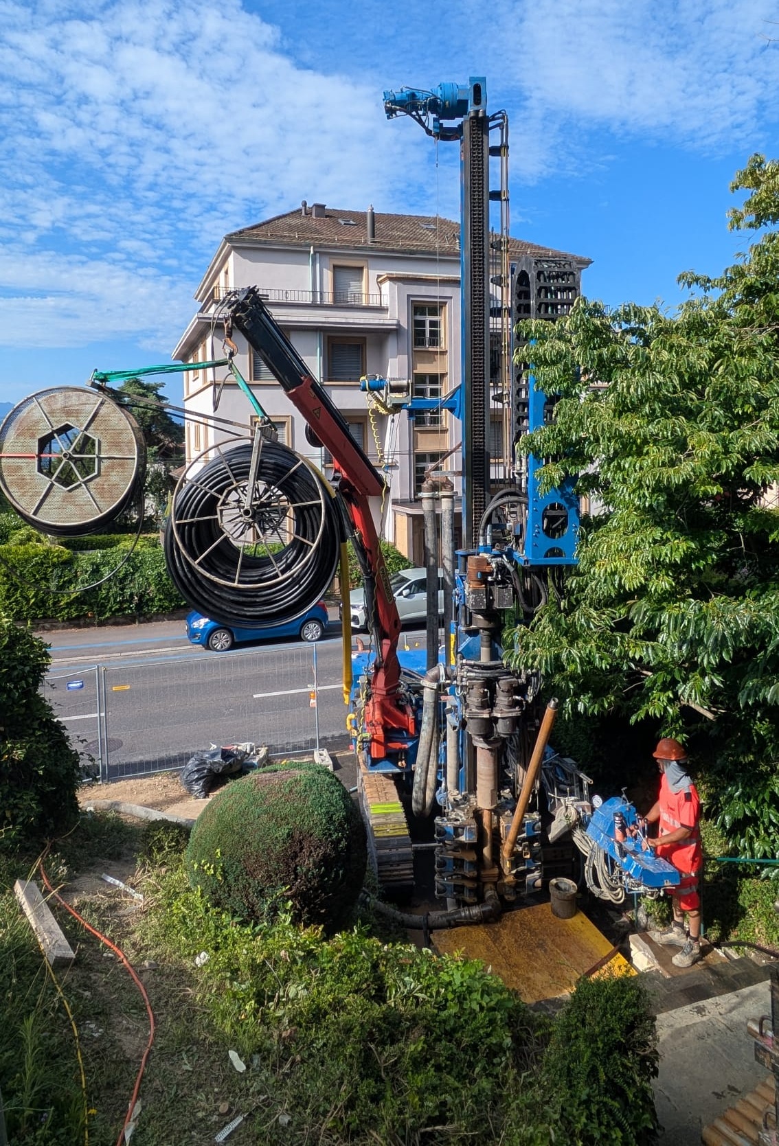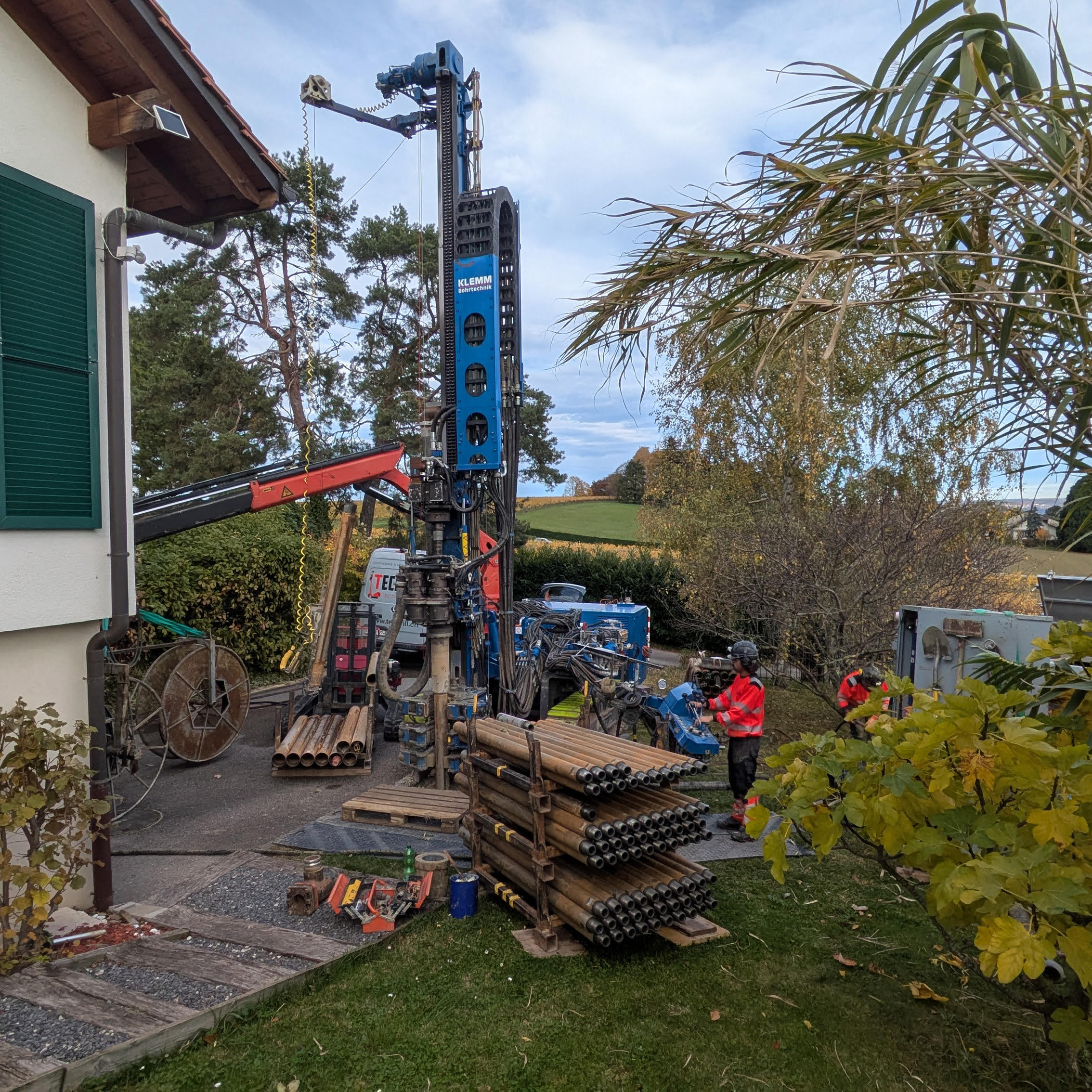 - Mise en fouille des sondes géothermiques, y-compris le remplissage et le raccordement